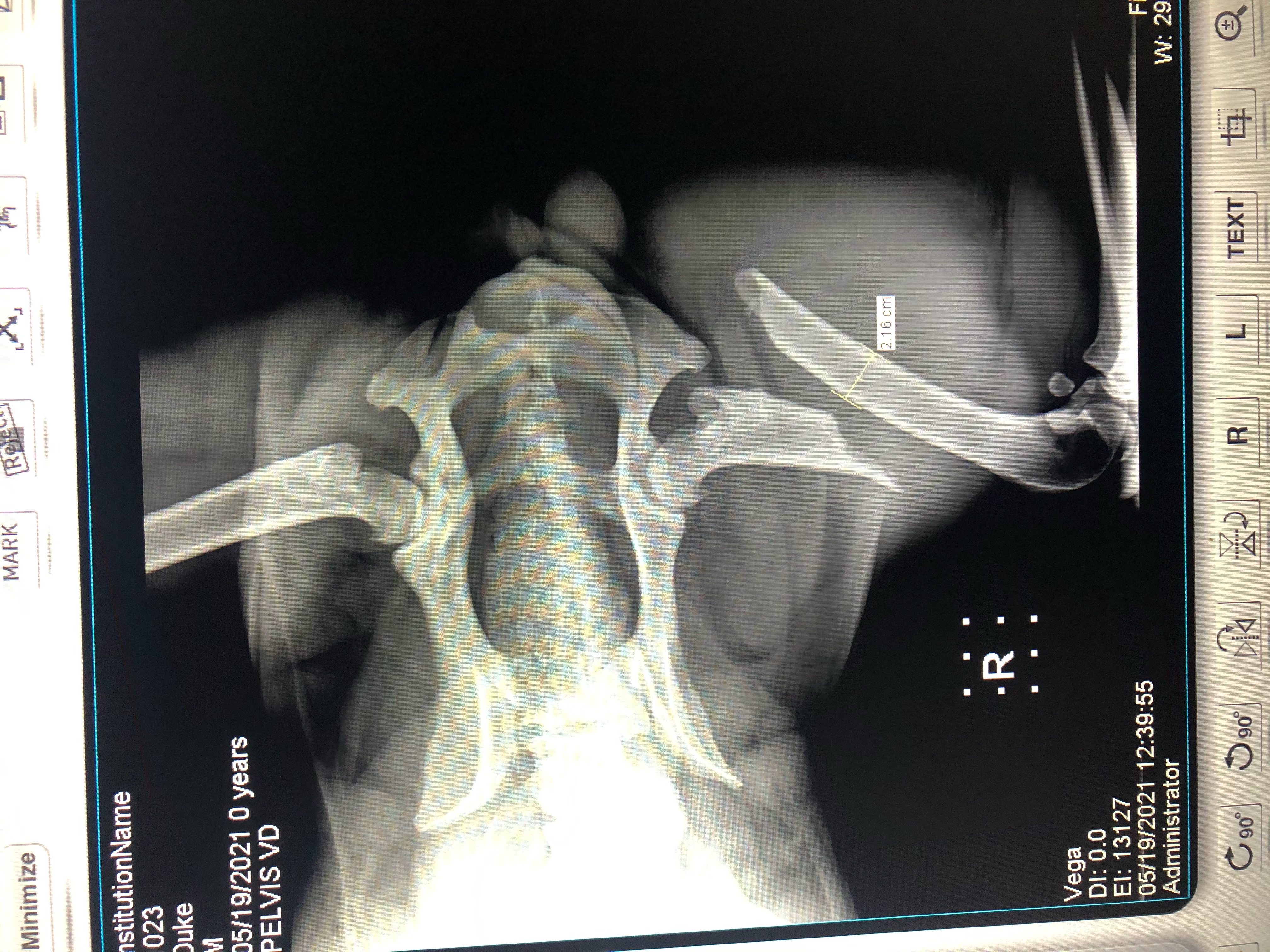 Duke![]() See the X-ray showing Duke's broken leg here. The file is 3 MB. |